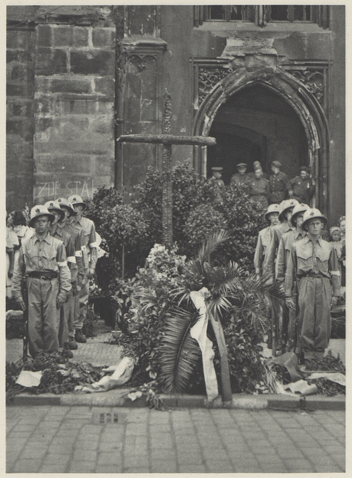 Bezprostředně po válce a s následnými výročími jejího konce začala vznikat improvizovaná i více či méně stabilní místa paměti, v nichž se na národní, lokální či korporátní úrovni vyjadřovala úcta padlým. Ta měla již od první světové války svoji ustálenou a všeobecně sdílenou ritualizovanou podobu – kladení věnců jako symbolů věčného života a vojenské slávy, čestných stráží, průvodů, držení ticha, proslovů, přehlídek, na které v případě společensky významnějších ceremonií navazovaly církevní, často ekumenické mše. Společenství, na nějž slavnostní akt cílil, bylo symbolicky vyjádřeno tím, komu byl obřad věnován a kdo se ho aktivně účastnil. První poválečné roky byly vzpomínkové rituály propojené jak se samotným výročím konce války, tak s výročím vzniku samostatného Československa. Pomníky, pomníčky a pamětní desky, které se při těchto příležitostech zakládaly, pomáhaly rituály fixovat do budoucnosti. A na druhou stranu to byly právě nejrůznější rituály, tradiční i nově zaváděné, které pomáhaly udržovat společenskou a politickou relevanci pomníků. První komemorace konce druhé světové války byly v první řadě tryznami za mrtvé, ale i ty se od počátku kombinovaly s politicko-společenskými manifestacemi, sportovními aktivitami, jako byly například štafetové běhy, a lidovými veselicemi vyjadřujícími radost z nabyté svobody.