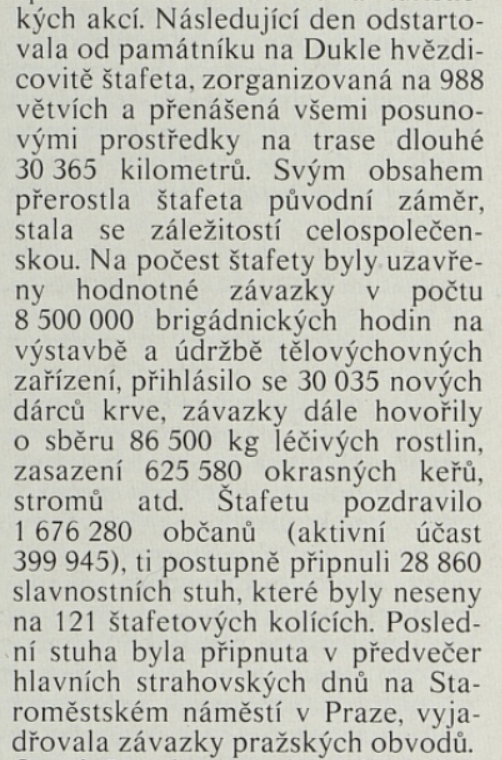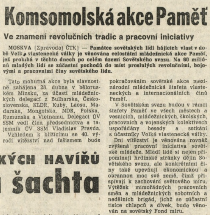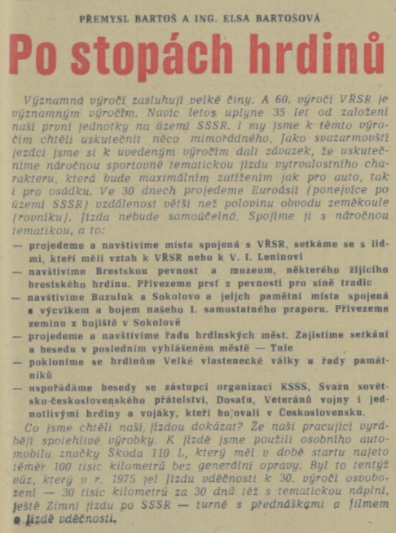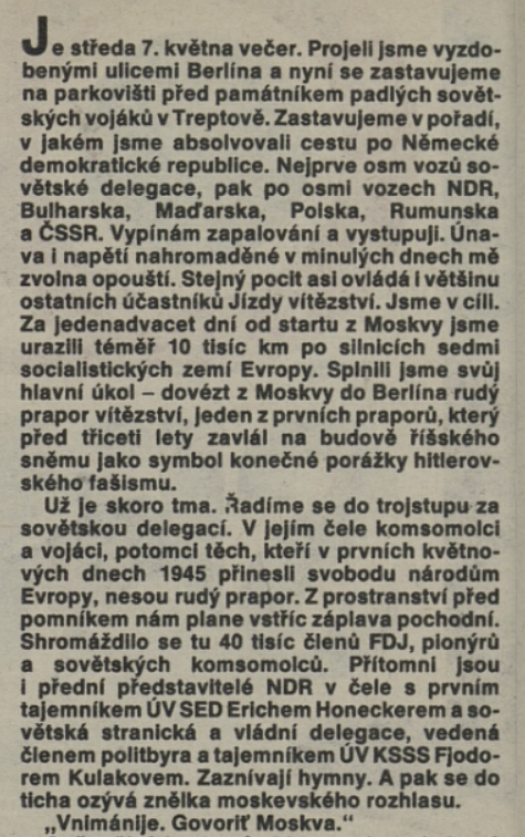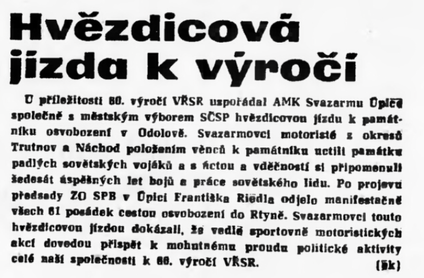 Společenské organizace Národní fronty byly pro občany socialistického Československa jedinou možností, jak se oficiálně věnovat svým zájmům. Členství v nich bylo zároveň podporovaným a ze strany představitelů moci pozitivně hodnoceným projevem socialistické angažovanosti. Masové a centrálně řízené organizace jako Socialistický svaz mládeže, Svaz československo-sovětského přátelství, Československý svaz žen, Svazarm (Svaz pro spolupráci s armádou) či Československý svaz tělovýchovy a sportu nabízely svým členům a funkcionářům materiální zázemí a prostředky, zároveň z pozice „převodových pák“ měly za úkol prosazovat oficiální státní politiku a ideologickou výchovu. Jejich masový rozmach v sedmdesátých a osmdesátých letech a vzrůstající materiální a technické možnosti měl za důsledek rozvoj nových, často organizačně i finančně náročných rituálů, které manifestovanou úctu k osvoboditelům a oslavu socialistického režimu propojovaly s povinně-dobrovolnou angažovaností a sportovně-zájmovými aktivitami a koníčky. Spektakulární jízdy, běhy či pochody přitom udržovaly v permanenci vybrané památníky a významná místa paměti druhé světové války. S rozvojem družebních styků a přeshraničních výjezdů v rámci socialistického bloku se navíc otevírala možnost pro podnikání zahraničních expedic („po stopách...“), jež manifestaci úcty a vděčnosti (sovětským) osvoboditelům přenášela na ještě vyšší, mezinárodní úroveň.