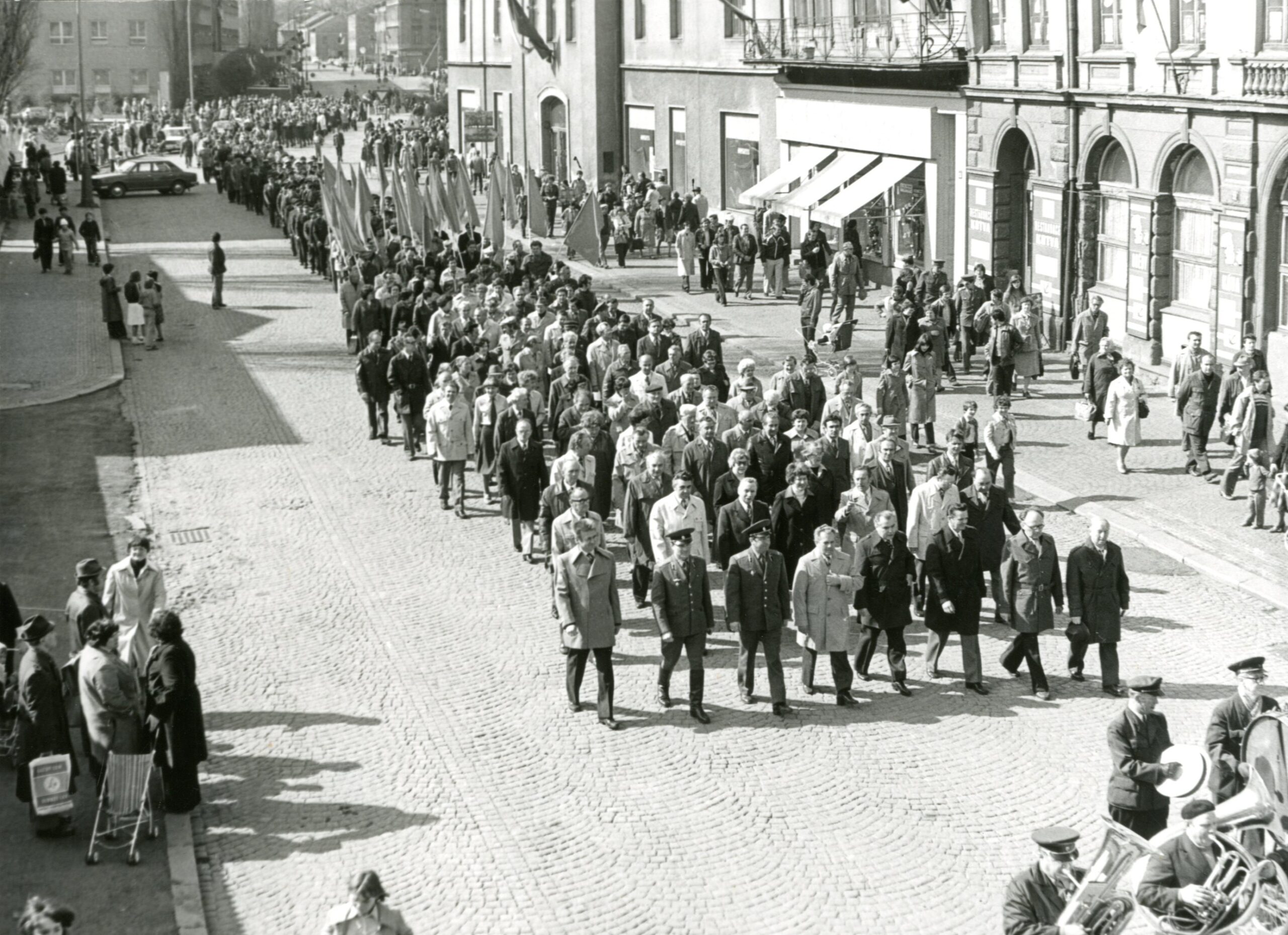 Nešlo ale jen o výklad minulosti. Oslavy výročí konce války se v první řadě stávaly masovou mobilizací obyvatel k aktuálním politickým tématům a zvýšenému pracovnímu úsilí, podpoře komunistického režimu a spojenectví se socialistickými zeměmi v čele se Sovětským svazem. To se projevilo i v samotné architektuře pomníků druhé světové války, které postupem času měly především představovat místní dominanty s dostatečným prostorem pro shromažďování manifestujících davů. Efektním prostředkem mobilizace mas byly také průvody od pomníku k pomníku nejčastěji propojující památníky osvobození v centrální části měst s hroby a pomníky na hřbitovech. Památníky osvobození byly významným objektem internacionální družby. Na ně navázané rituály vděčnosti pomáhaly v rané normalizaci integrovat zástupce dislokovaných sovětských vojsk do veřejných oficialit, ve kterých aktivně působili až do změny politického režimu. Pomníky se stávaly místem orientace nejenom tradičních průvodů, ale i novodobých štafet, závodů, turistických tras a zájezdů na počest významných výročí.