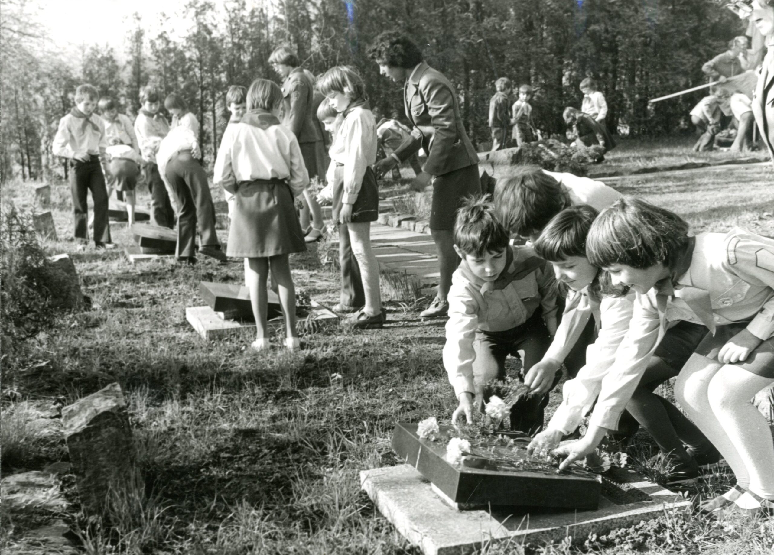 Děti se stávaly součástí oficiálních pietních a politických rituálů nejrůznějších režimů moderní doby poměrně běžně. Postavy a postavičky v národních krojích nebo stejnokrojích zájmových organizací sekundovaly symbolickým aktům i vystoupením veřejných činitelů a dodávaly jim na důvěryhodnosti. S komunistickým převratem se přítomnost dětí v manifestačních oficialitách stala viditelnější a působením školy a masových organizací také nevyhnutelnější. Oběžníky ministerstva školství vyzývaly školy i Pionýr, aby děti nejenom zapojovaly do výročních rituálů okolo válečných pomníků a hrobů, ale i do jejich průběžné údržby. Souviselo to se snahou komunistického režimu udělat z péče o tyto objekty celospolečenskou a zároveň osobní záležitost. Tzv. výchova k vlastenectví a internacionalismu byla součástí školní výuky i běžného provozu pionýrských a svazáckých oddílů. Oficiální paměť druhé světové války a ritualizovaná úcta k nedotknutelným hrdinům protifašistického a revolučního boje v nich byla integrována do nejrůznějších zájmových, edukačních a zábavních činností prostřednictvím dlouhodobých celostátních výzev i jednorázových akcí, branně-bojových her, soutěží či turistických výletů.