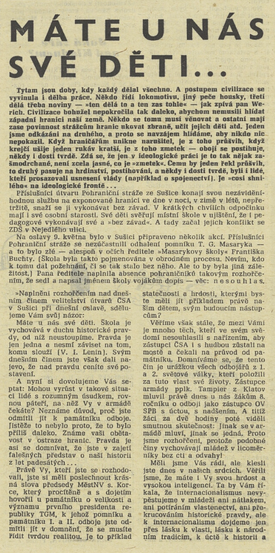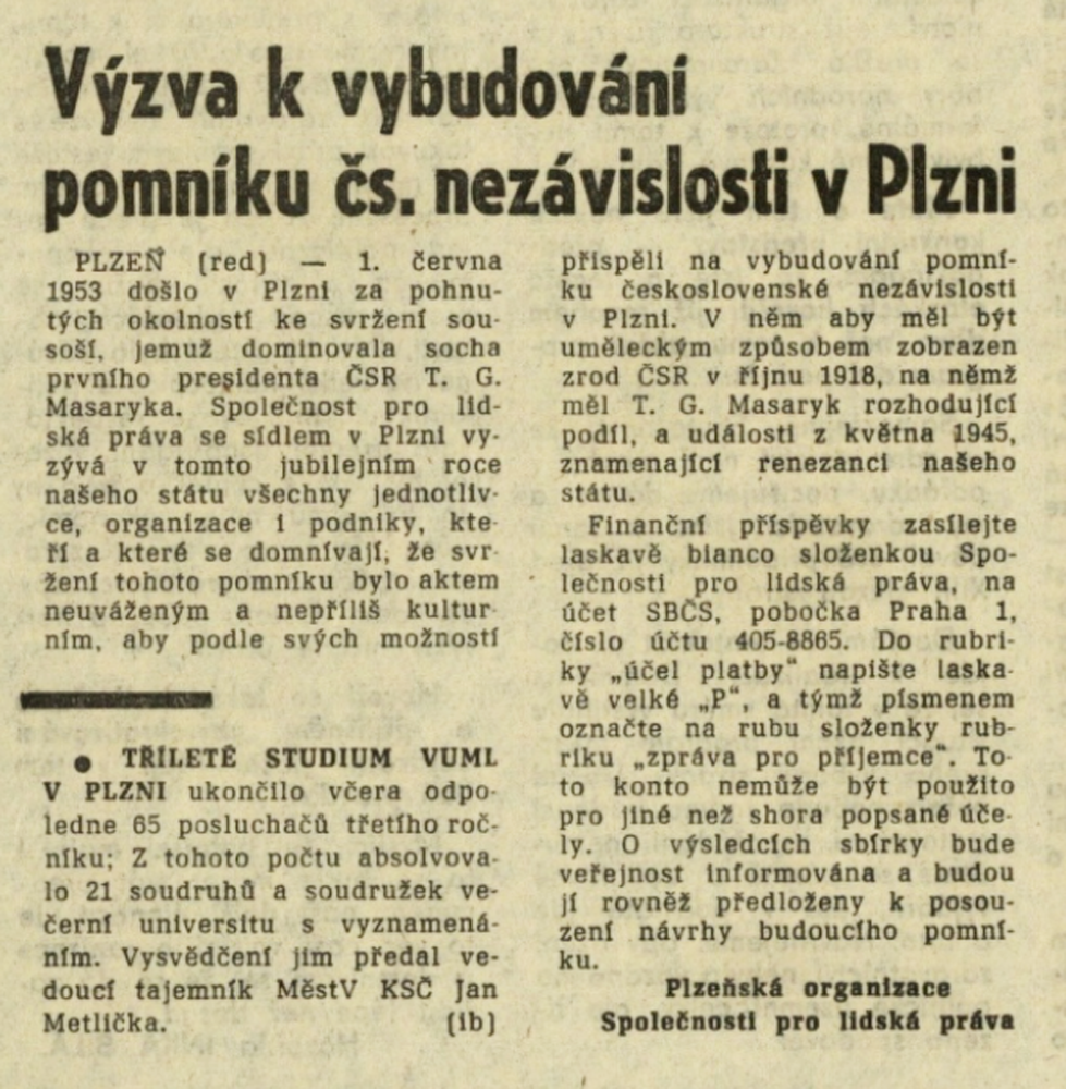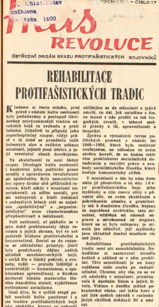 Nejen představitelé svazu vkládali naděje na uvolnění oficiálního kánonu vzpomínání do nového prezidenta Ludvíka Svobody, veterána obou světových válek, jenž manifestoval nový přístup sympatickými gesty. Jako když v létě 1968 přijal v Lánech odbojáře první a druhé světové války (včetně těch v padesátých letech kriminalizovaných) nebo uctil padlé americké vojáky položením kytice k pomníku u Chebu. Zatímco představitelé Chebu zde uspořádali oficiální ceremonii ještě k výročí osvobození města v roce 1969, občany Plzně scházející se o týden později u nepostaveného pomníku americké armádě už rozehnala policie obušky a vodním dělem. Okno pro jiné vzpomínání se opět zavíralo.