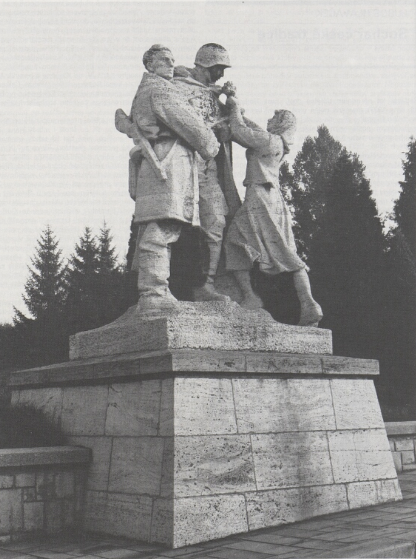 Sbratření či bratrství v boji bylo rozšířeným a oblíbeným motivem umělců ztvárňujících prožívání druhé světové války a osvobození. Pomníky s touto symbolikou zahrnující poděkování Rudé armádě-osvoboditelce vytvářely dominanty zejména místům významných vojenských operací a válečných hrobů. Reprezentace sbratření či bratrství v boji vytvořili pro veřejný prostor přední sochaři, mimo jiné Josef Malejovský pro památník Dukla (1954–1964), Jan Hána pro památník sovětské armády ve Svidníku (1954) nebo Miloš Axman pro památník ostravské operace v Hrabyni (1981). Mezi prvními, jako slib sovětským vojákům a partyzánům vracejícím se domů, vznikl pomník sbratření v boji v Mnichu.