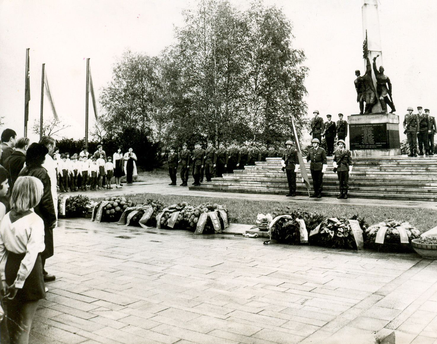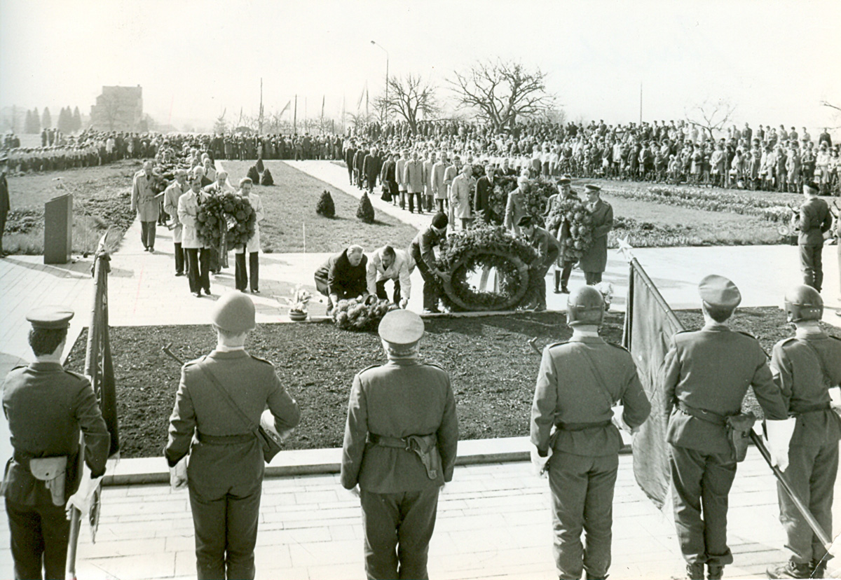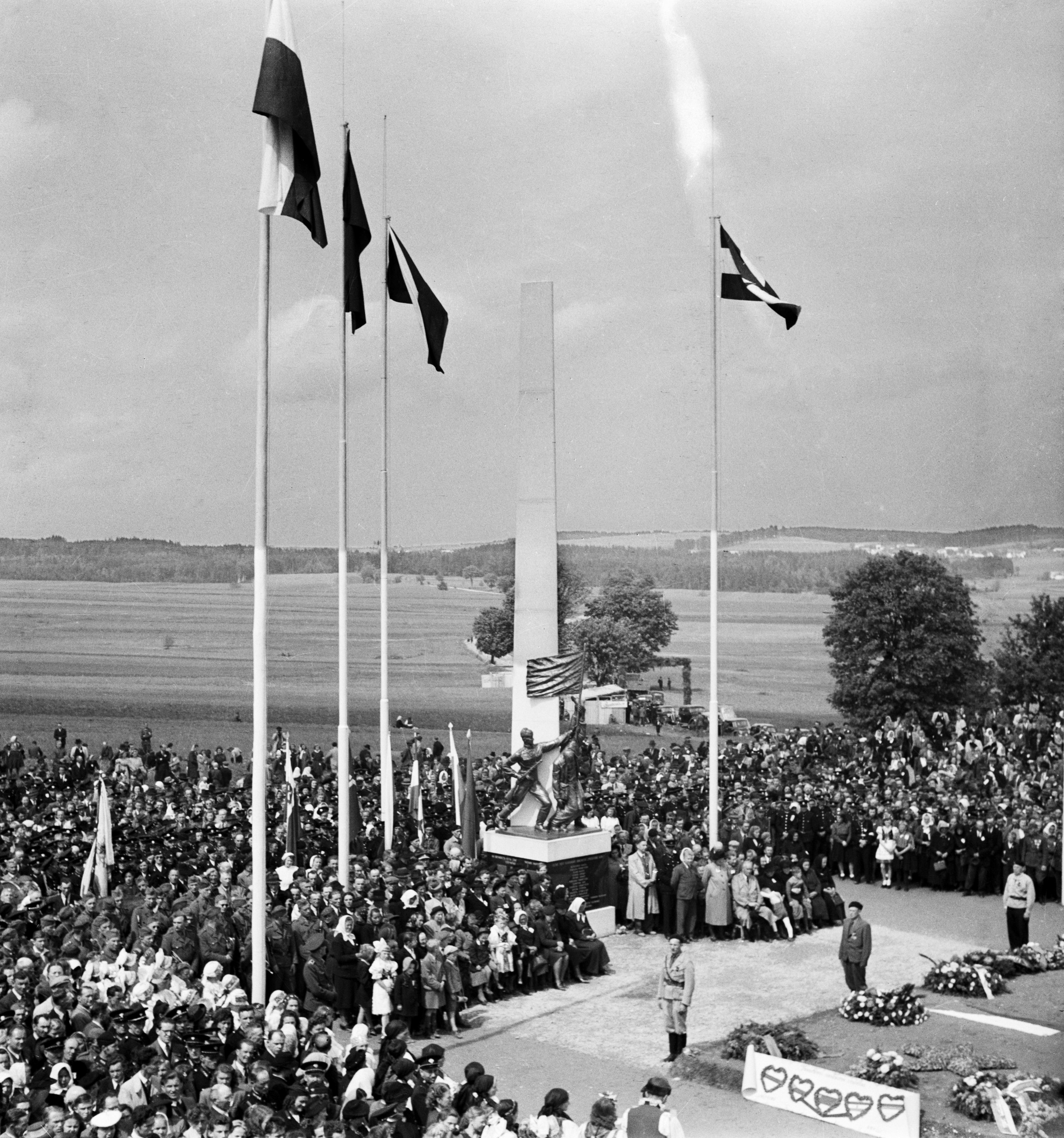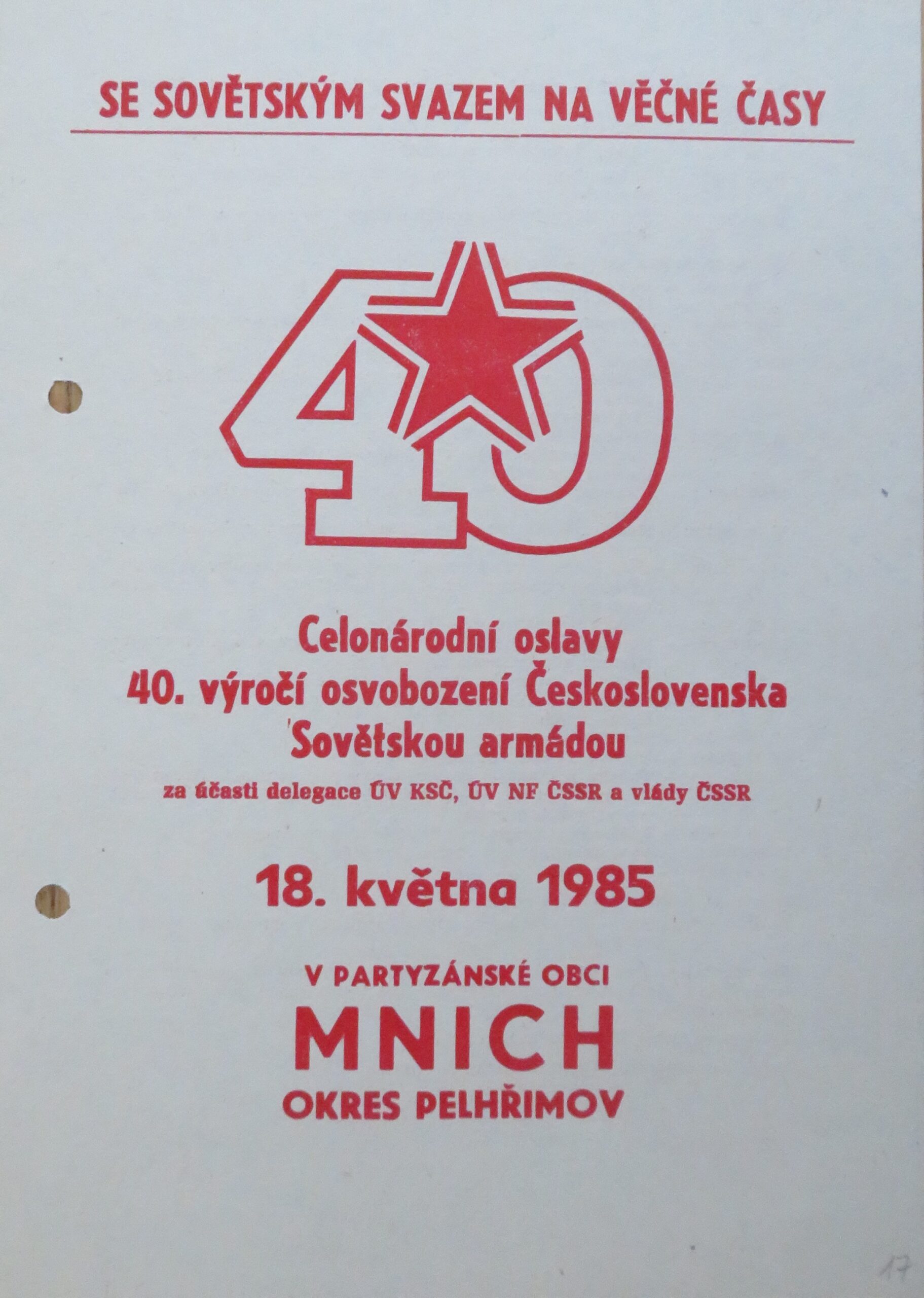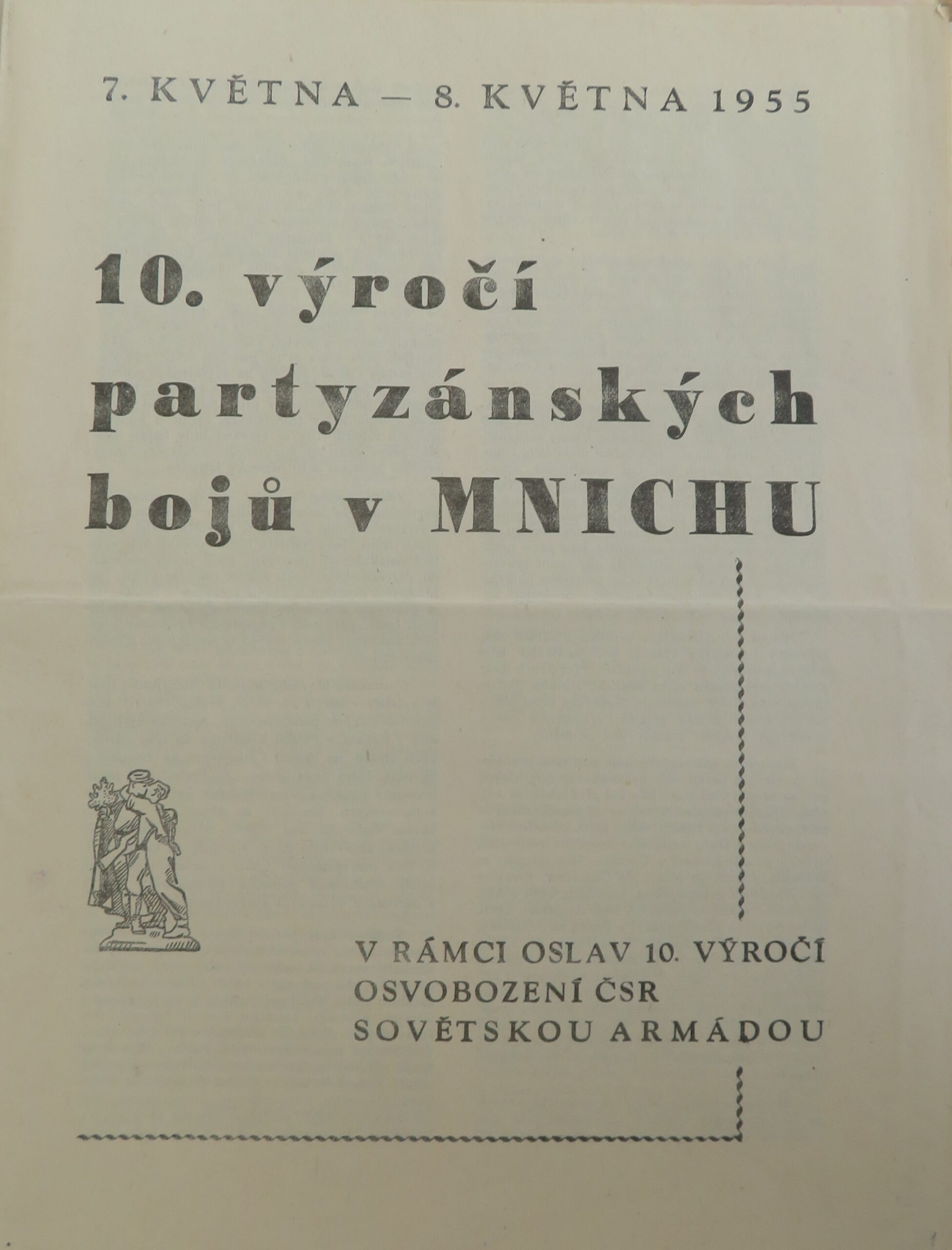 U památníku se konaly pravidelné oslavy konce druhé světové války a osvobození, které se v prvních letech označovaly jako národní pouť na počest padlých, za něž se sloužily polní mše. V letech jubilejních výročí byly oslavy organizované jako akce celonárodního významu za účasti vrcholných představitelů státu a KSČ. V roce 1965 například do Mnichu zavítal prezident republiky a první tajemník ústředního výboru KSČ Antonín Novotný, který při této příležitosti předal obci Řád rudé hvězdy udělovaný za odbojovou činnost. Mimo výroční roky se oslavy pořádaly ve skromnějším rozsahu a s menším zastoupením oficiálních hostů, ale stále s velkou účastí veřejnosti (20–30 tisíc účastníků). Oslavy v Mnichu se staly v době komunistického režimu v Československu nejvýznamnější a nejnavštěvovanější společenskou událostí v regionu, ačkoli budovaný obraz slovanského bratrství hned zkraje poznamenala roztržka mezi SSSR a Jugoslávií. Organizace i hosté se v průběhu let měnili. Místo představitelů jugoslávského velvyslanectví byli zváni zástupci neslovanských států socialistického bloku, Rumunska a Albánie, později se oslav účastnili i hosté z NDR, zpravidla delegace funkcionářů z družební obce Hildburgausen. Od roku 1960 přijížděli na oslavy také váleční veteráni ze SSSR a docházelo tak k setkávání bývalých českých a sovětských partyzánů.