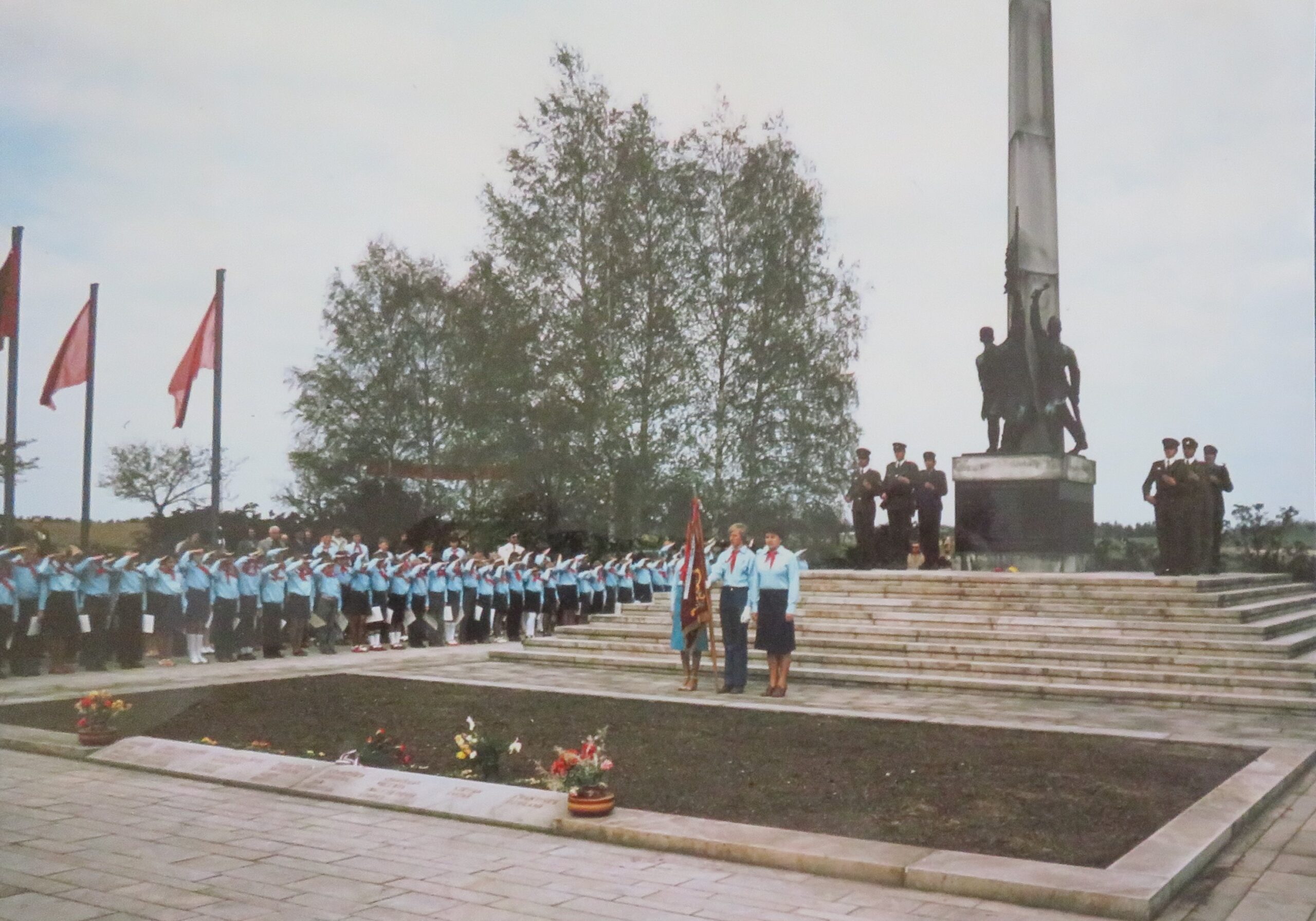 Po osvobození oblasti Rudou armádou byla těla zastřelených pietně pohřbena do společného hrobu na návrší za obcí. K obětem přestřelky v Mnichu byly uloženy i ostatky dvou dalších padlých při střetnutí s příslušníky SS v okolních lesích. 27. května 1945 byla nad čerstvým hrobem uspořádána tryzna, jíž se podle dobového tisku zúčastnilo „několik set partyzánů a další tisíce dělníků a zemědělců z táborského kraje“ a při loučení se sovětskými partyzány byl dán slib vybudovat nad hrobem trvalý památník. Tryzna se stala počátkem tradice pravidelných každoročních shromáždění i výročních celonárodních manifestací, pořádaných v rámci oslav osvobození Československa Rudou armádou. Před první výroční pietou v květnu 1946 přemístili do společného hrobu ještě dalšího člena zdejší partyzánské skupiny, Jugoslávce Fedora Štancla, který zahynul po událostech v Mnichu u nedaleké vesnice Markvarec. Hrob se tak stal symbolem společného boje partyzánů různých národů proti okupantům a posloužil jako příklad slovanského bratrství a vzájemnosti.