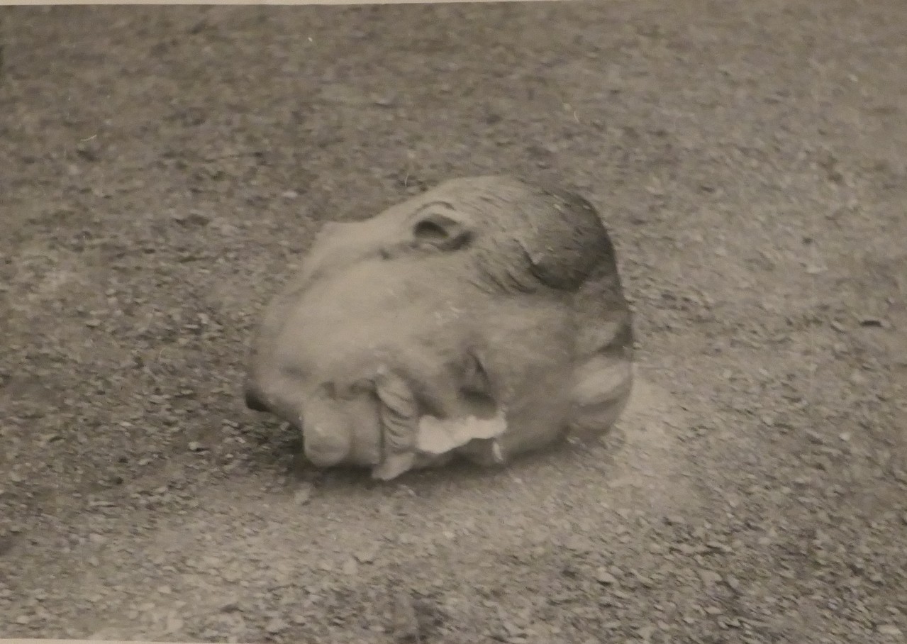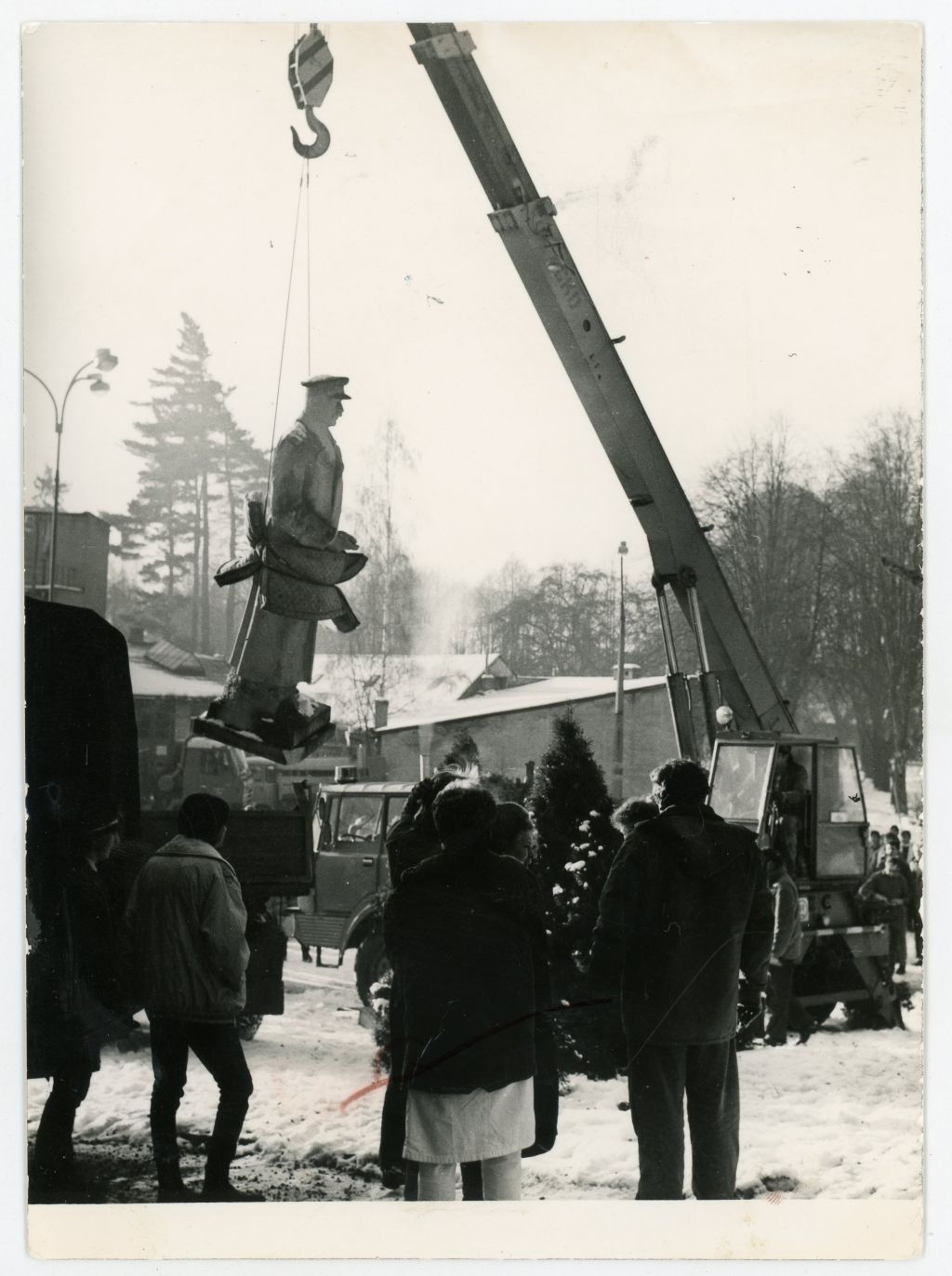 V dubnu 1954 někdo sochu v noci strhl, což vzhledem k použitému materiálu způsobilo její naprostou zkázu. Přes intenzivní pátrání, které těžce dopadlo na obyvatele obce, včetně zapojení a rozšíření husté sítě informátorů Státní bezpečnosti, nebyli pachatelé vypátráni. Nepodařilo se ani vyvolat iniciativu a aktivizovat občany k obnově pomníku. V roce 1956, nejspíš pod vlivem diskuse o Stalinově kultu osobnosti, byl případ odložen.