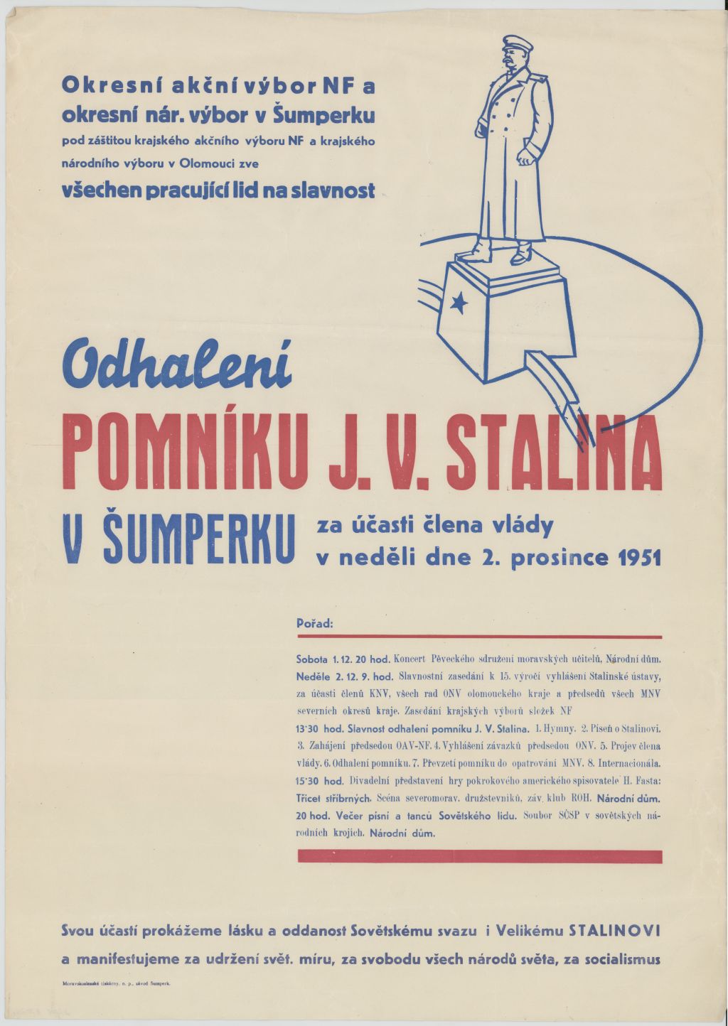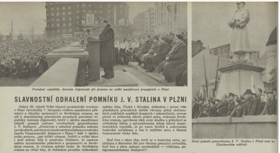 Kult Stalina, systematicky budovaný od třicátých let v Sovětském svazu, byl po válce importován i do Československa. Stalin byl oslavován jako moudrý politický vůdce, geniální vojenský stratég, osvoboditel a ochránce Československa a nejlepší přítel československého lidu. Především v pohraničí se poukazovalo na jeho zásluhy za odsun Němců a navrácení sudetských oblastí do slovanských rukou. Podobně jako rudoarmějci personifikoval Sovětský svaz a velké ideály, které s ním propaganda spojovala. Zemi nejdříve zaplavily jeho portréty, které měly lidem připomínat, že sovětský vůdce je vlastně i jejich vůdce, posléze se objevily snahy o jeho sochařské ztvárnění. I když některé pomníky vznikly už v roce 1948, významným impulsem pro jejich budování se stala mohutná politická kampaň okolo Stalinových sedmdesátých narozenin na konci roku 1949. V Plzni tak poklepávali na základní kámen v době, kdy ve městě ještě rezonovaly vzpomínky na demonstrace za připomenutí amerického podílu na osvobození země. Soutěž na pražský pomník pak dala vzniknout řadě návrhů, na kterých se nejenom tříbil zpodobňovací kánon, ale které bylo možné následně realizovat i na jiných místech. Dva poměrně úspěšné Stalinovy modely od Karla Pokorného a Josefa Malejovského sice byly po soutěži kritizovány pro svoji až přílišnou rozevlátost neodpovídající údajné vůdcově důstojnosti, ale nakonec se oba uplatnily v Liberci, respektive v Bosni.