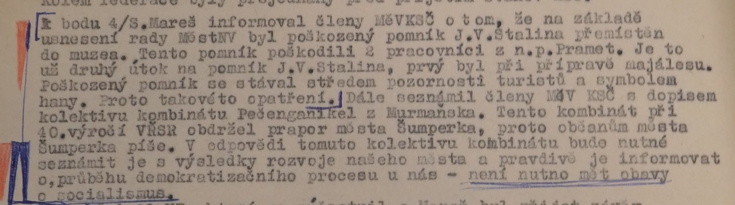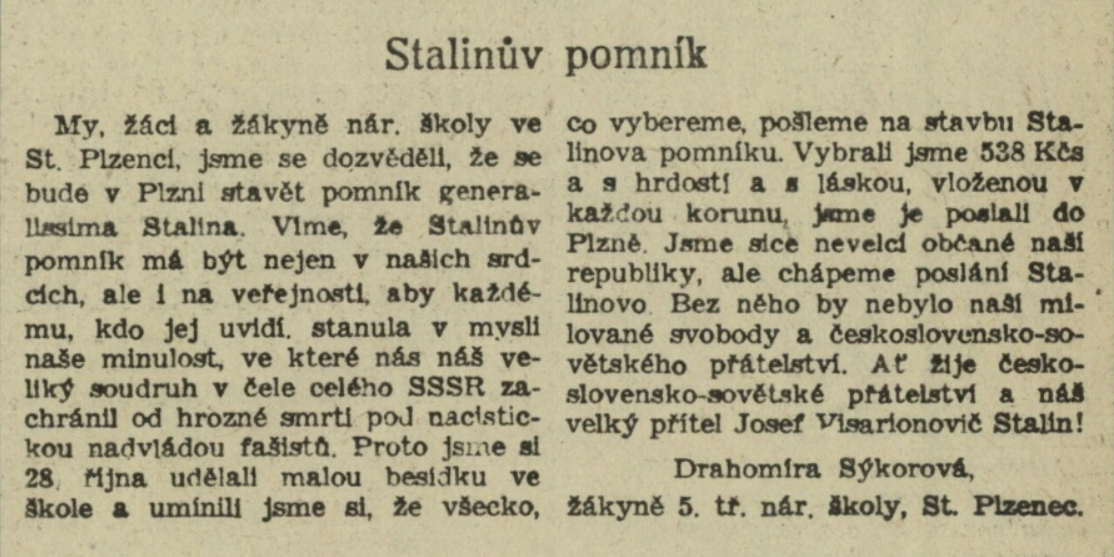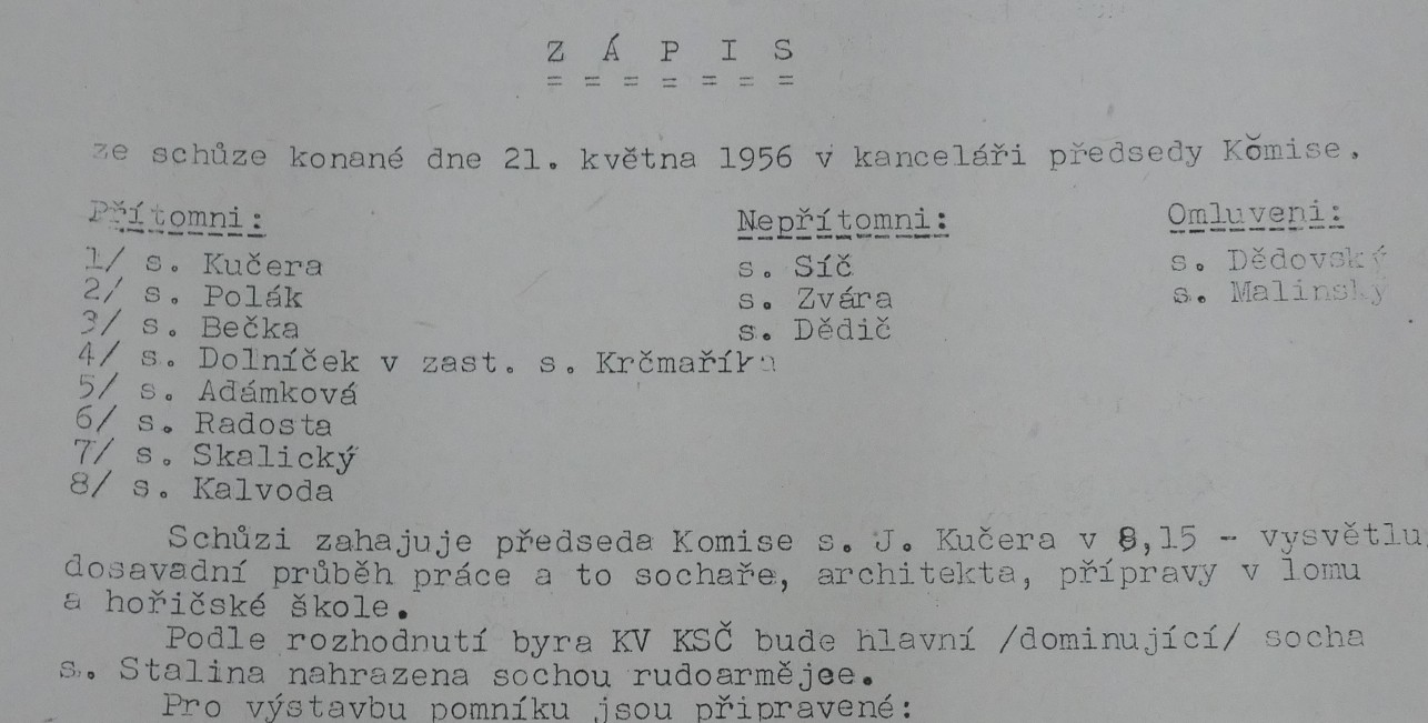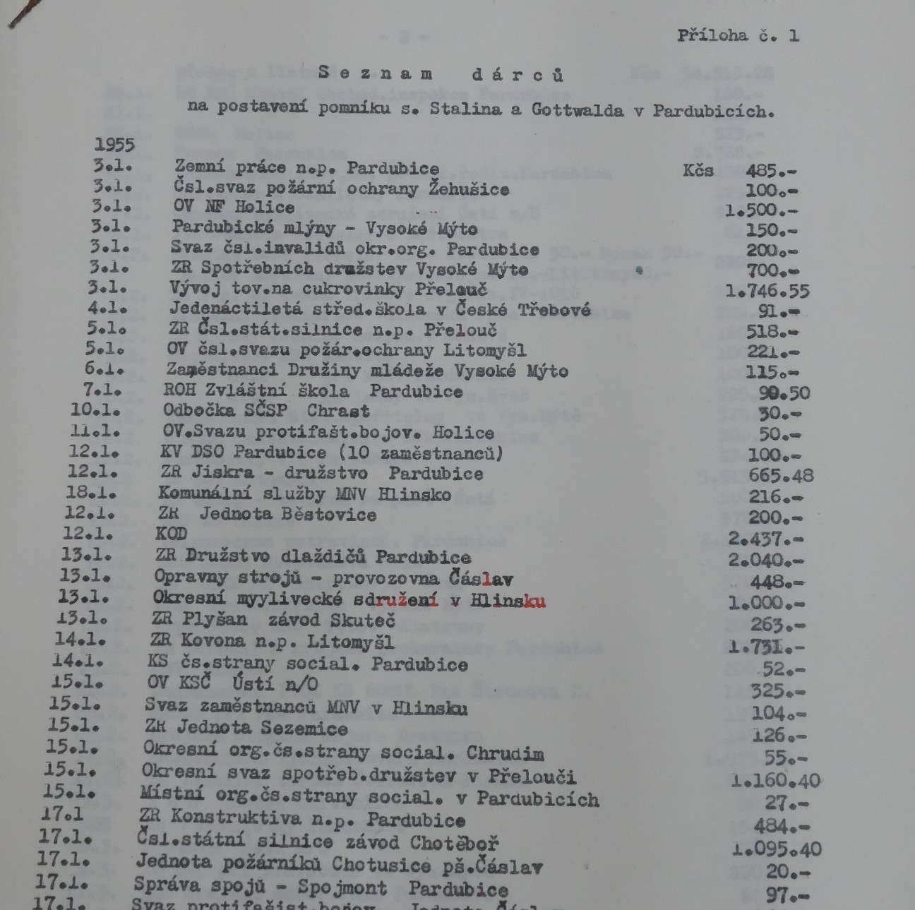 • opatrné zpochybnění Stalinova kultu – proměny pardubického pomníku